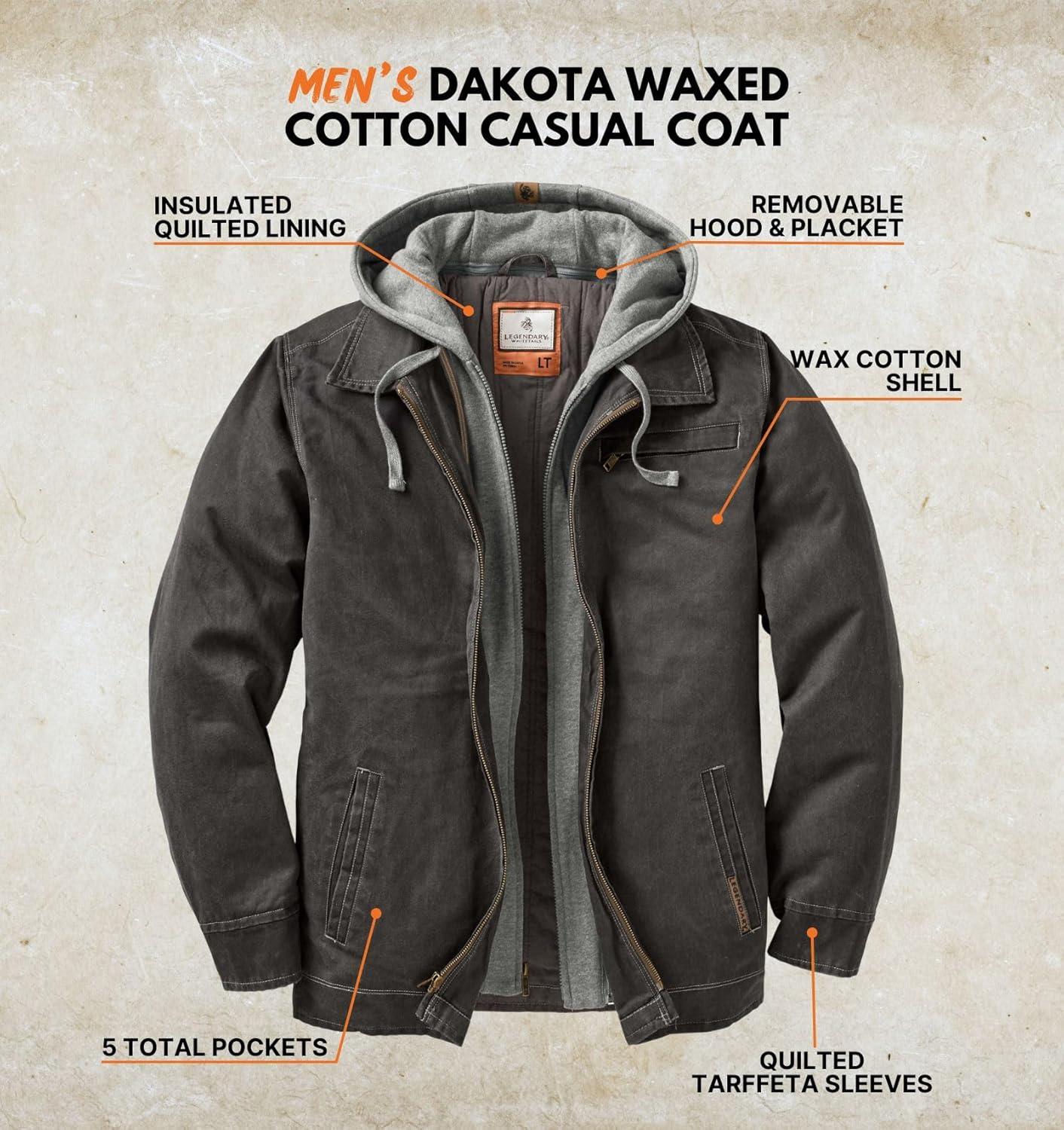 Legendary Whitetails Men’s Casual Coat with Hood Waxed Cotton Water Resistant(Tarmac)