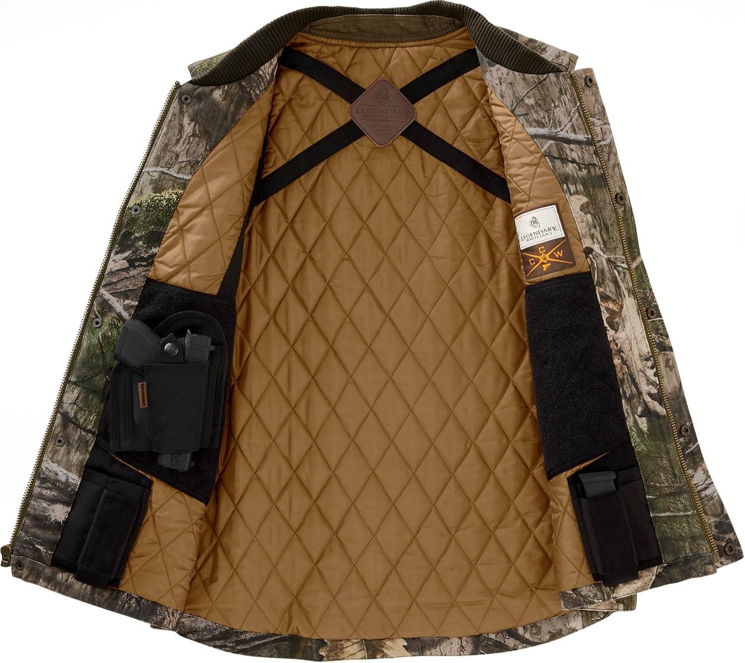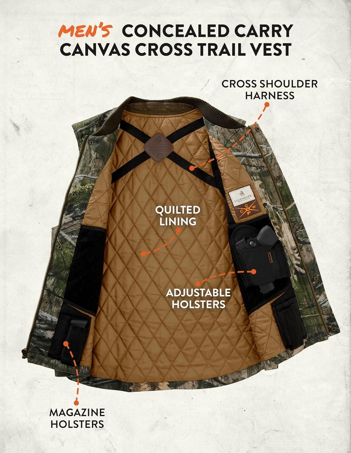 Legendary Whitetails Men’s Concealed Carry CCW Vest with Two Holsters Water-Repellent Canvas Insulated(Mossy Oak Country Dna)