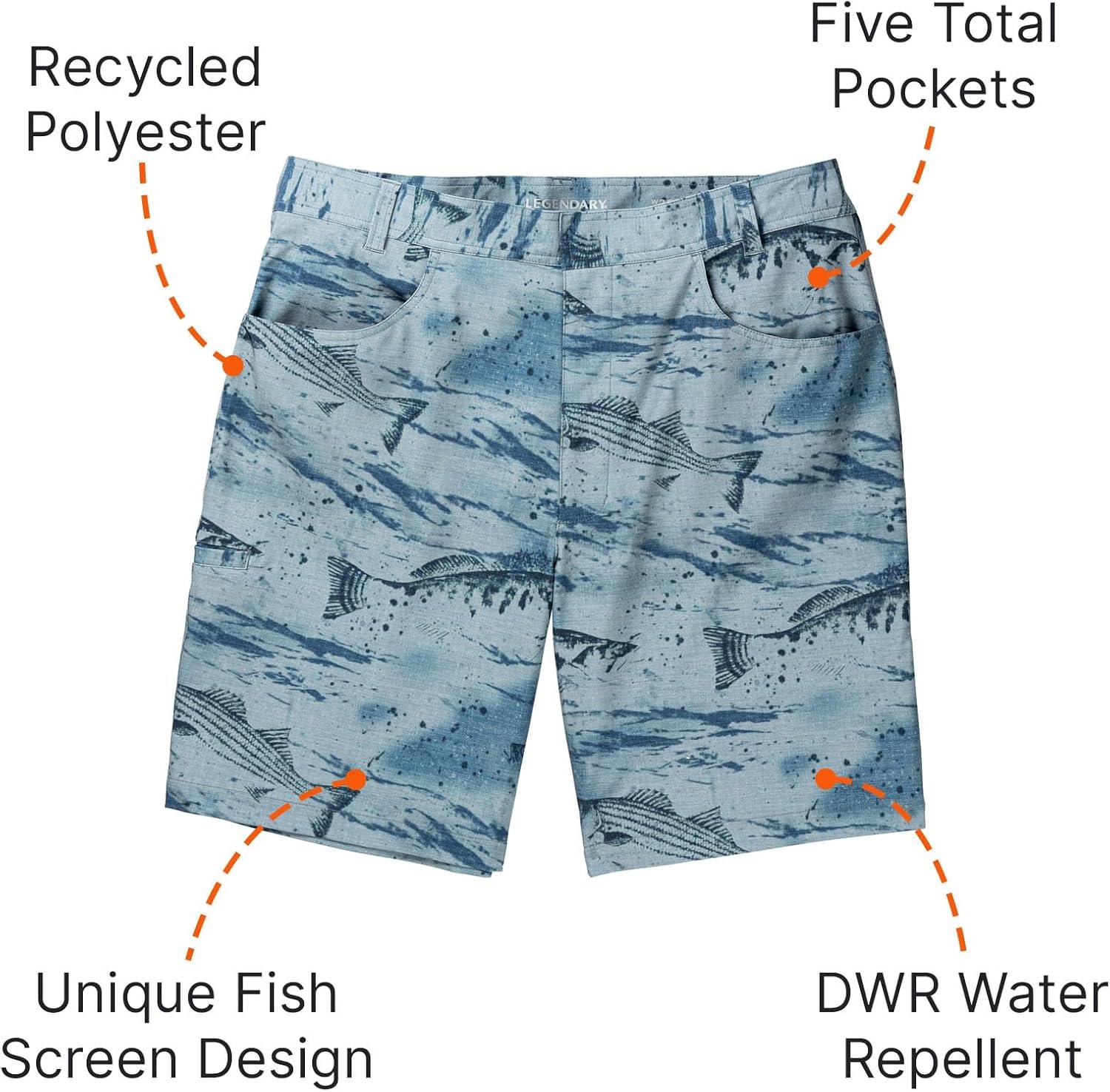 Legendary Whitetails Mens Eco Print 9 Inch Inseam Boardshort(Aegean Blue River)