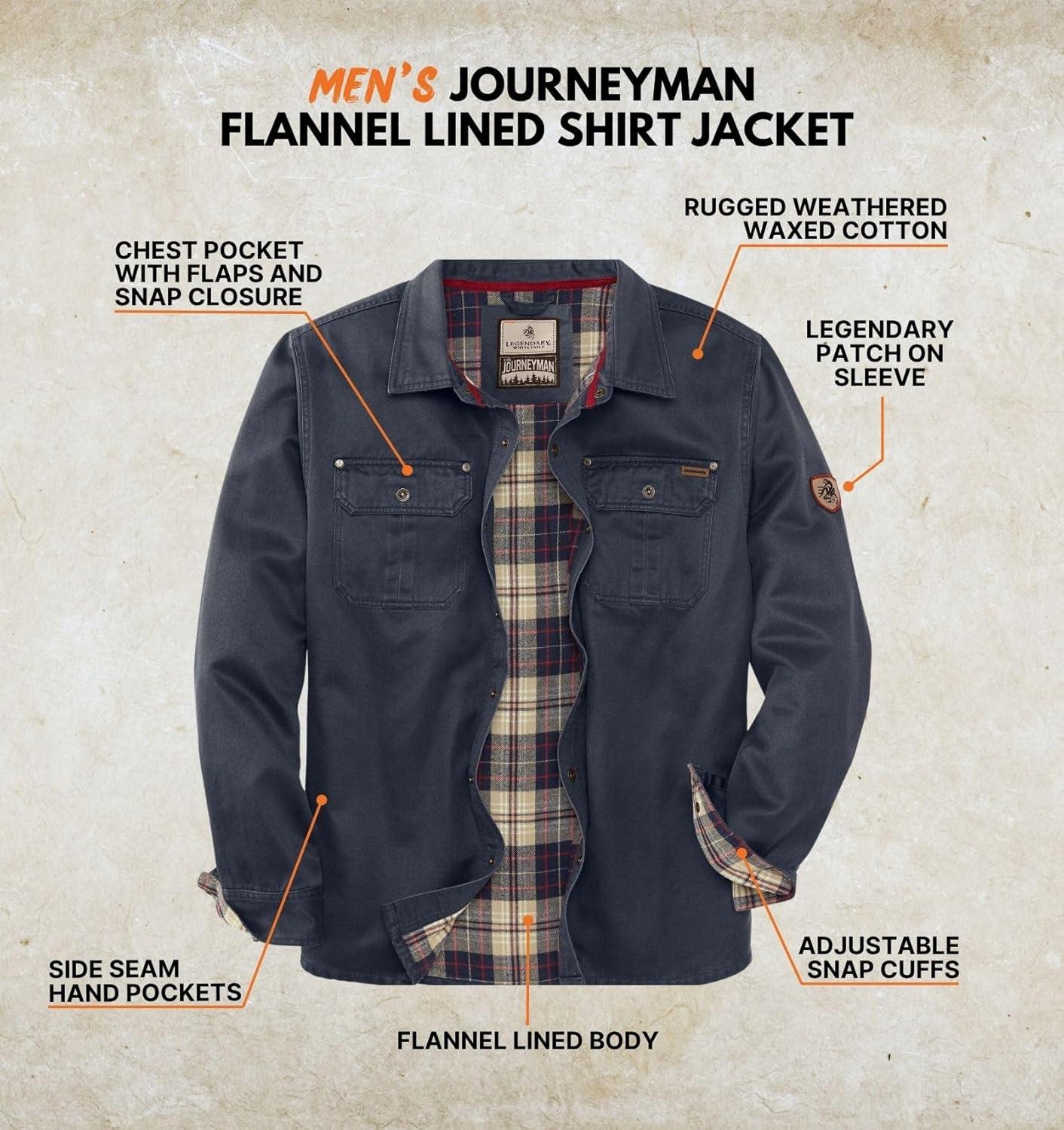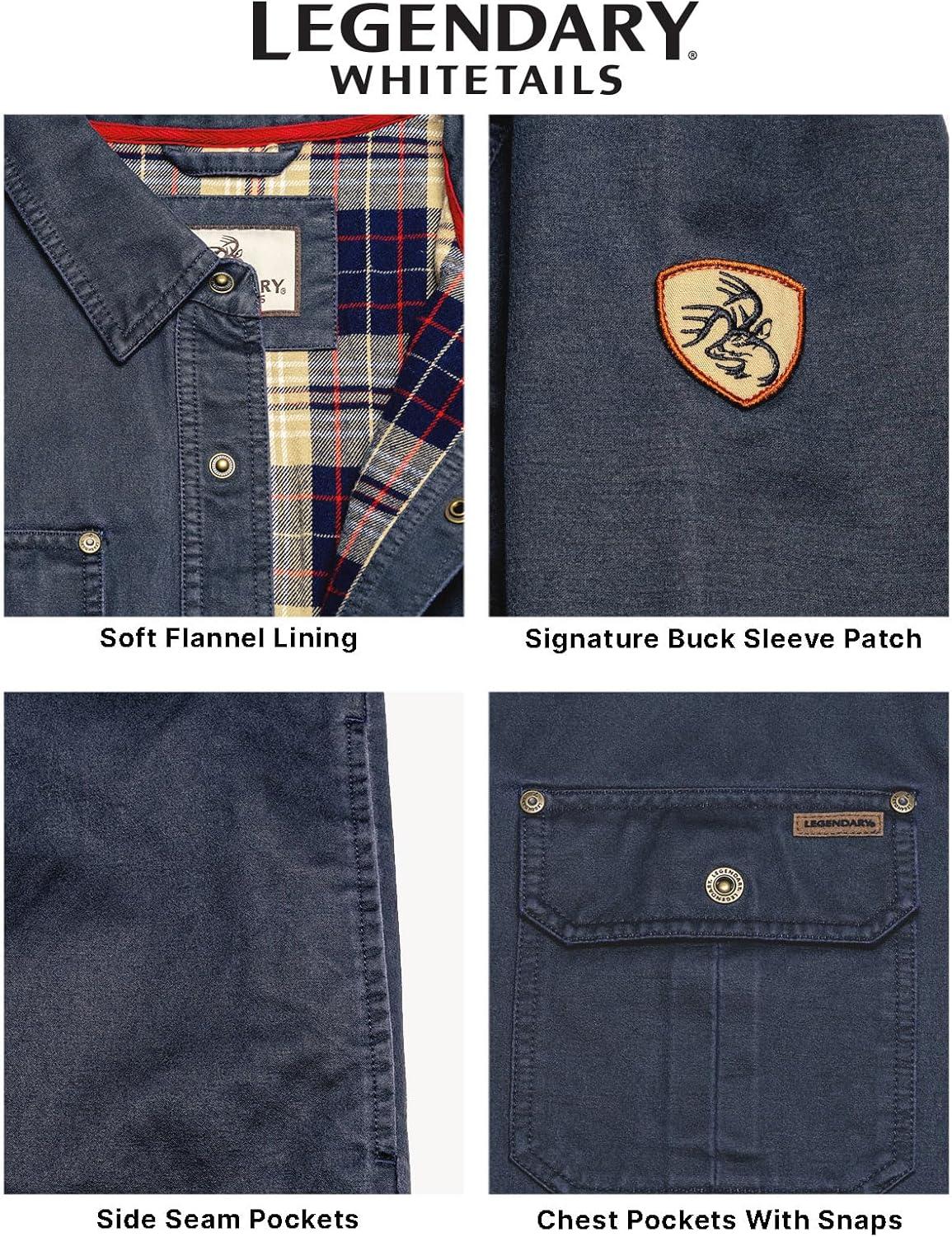 Legendary Whitetails Men’s Flannel Lined Shirt Jacket Waxed Cotton Water Resistant(Navy)