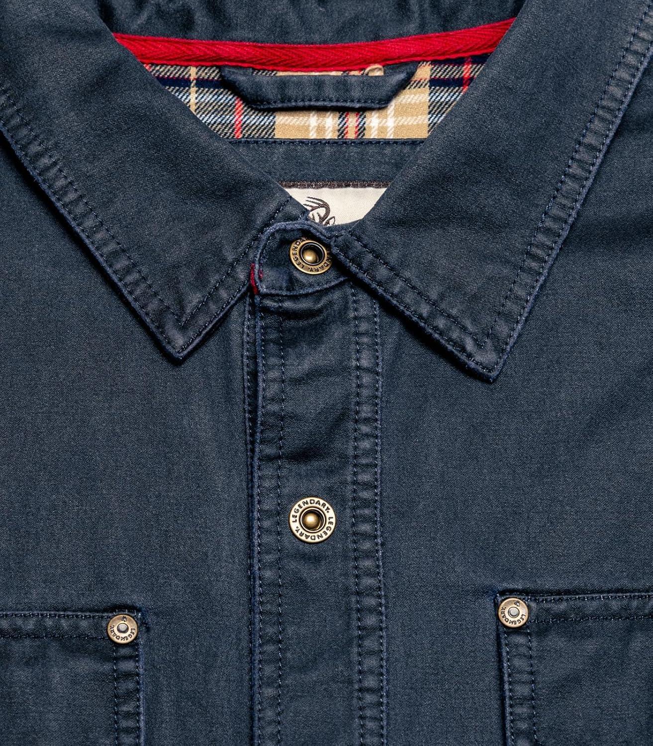 We added a flannel lining to our popular weathered cotton 'leather' shirt to build this one-of-a-kind shirt jac. The rugged waxed cotton provides unexpected softness with durablity. Features side hand warmer pockets, antique brass Legendary snaps, Signature Buck applique, and double needle stitching. Cotton/poly blend. Big & Tall sizes are designed for men over 6'2″ and add 2″ in body length and 1-1⁄2″ in sleeve length.