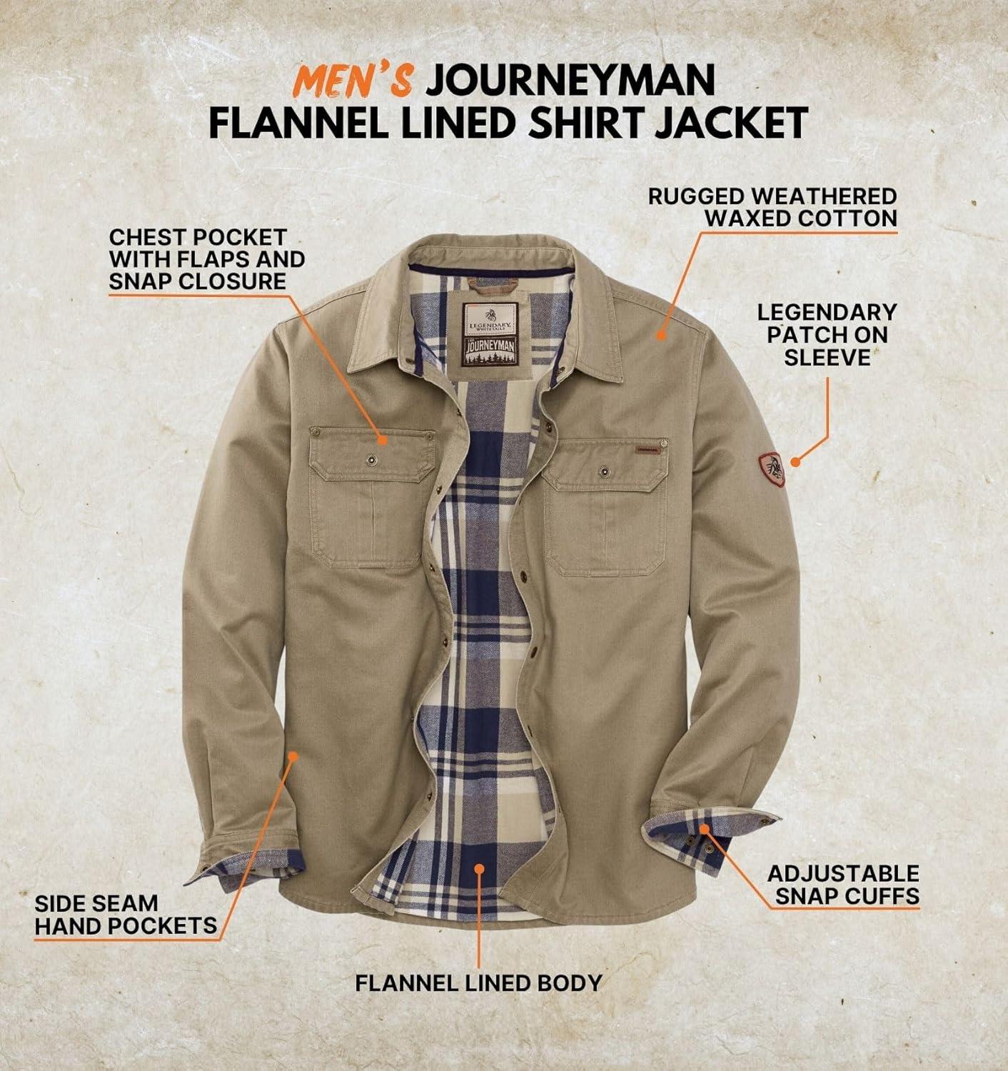 Legendary Whitetails Men’s Flannel Lined Shirt Jacket Waxed Cotton Water Resistant(Twig)