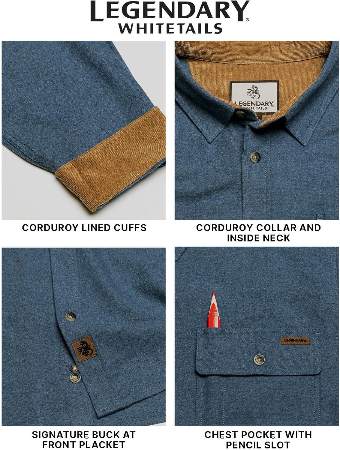 Legendary Whitetails Men’s Flannel Shirt Long Sleeve Button Down 100% Cotton(Bering Sea Heather)