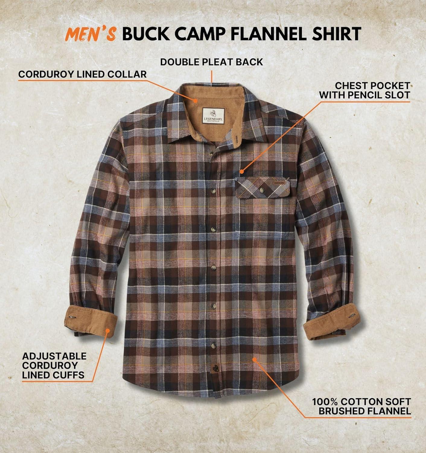 Legendary Whitetails Men’s Flannel Shirt Long Sleeve Button Down 100% Cotton(American Treasure Plaid)