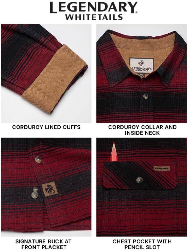 Legendary Whitetails Men’s Flannel Shirt Long Sleeve Button Down 100% Cotton(Forest Plaid)