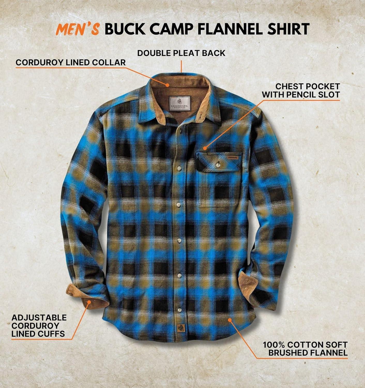 Legendary Whitetails Men’s Flannel Shirt Long Sleeve Button Down 100% Cotton(Cobalt Plaid)