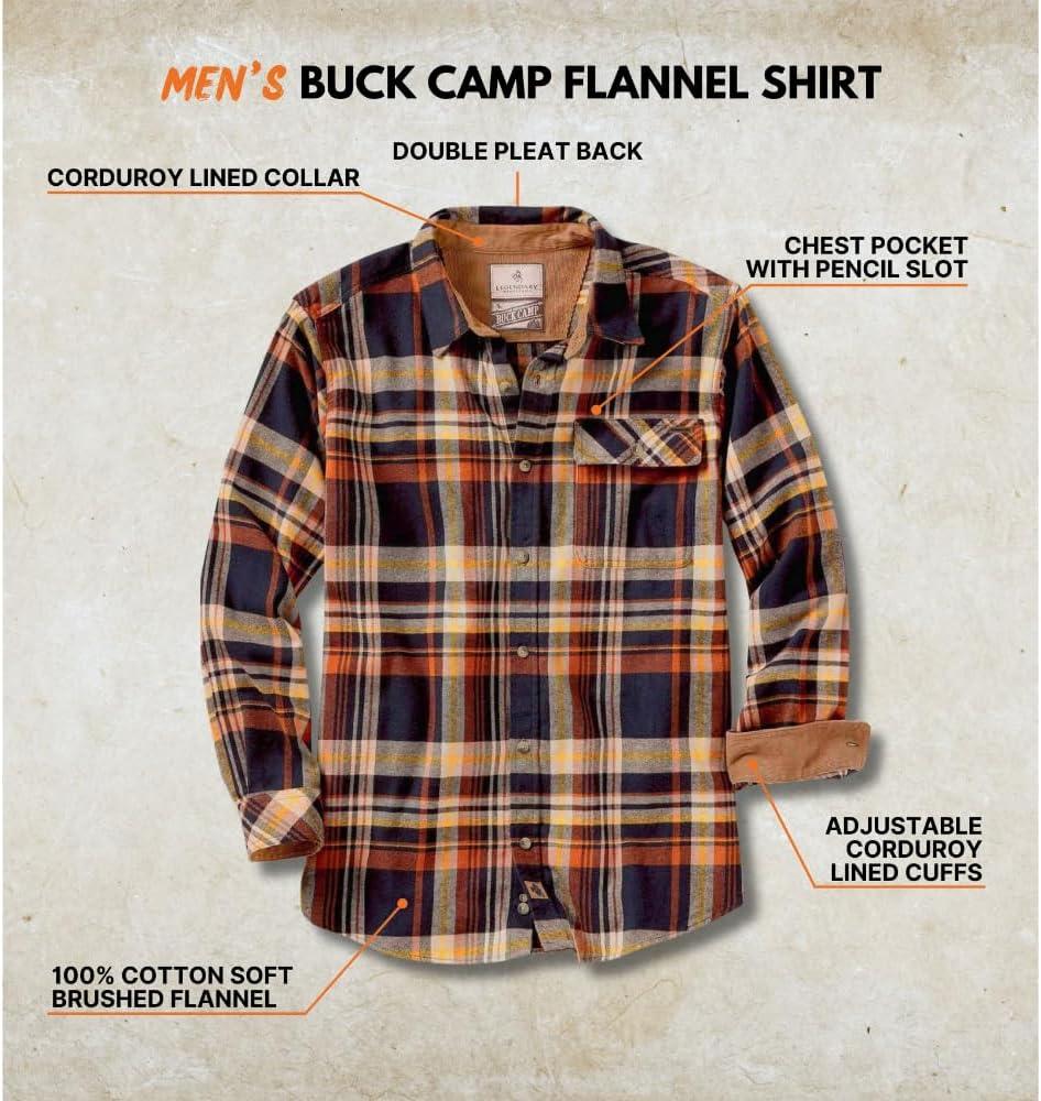 Legendary Whitetails Men’s Flannel Shirt Long Sleeve Button Down 100% Cotton(Buck Forest Plaid)