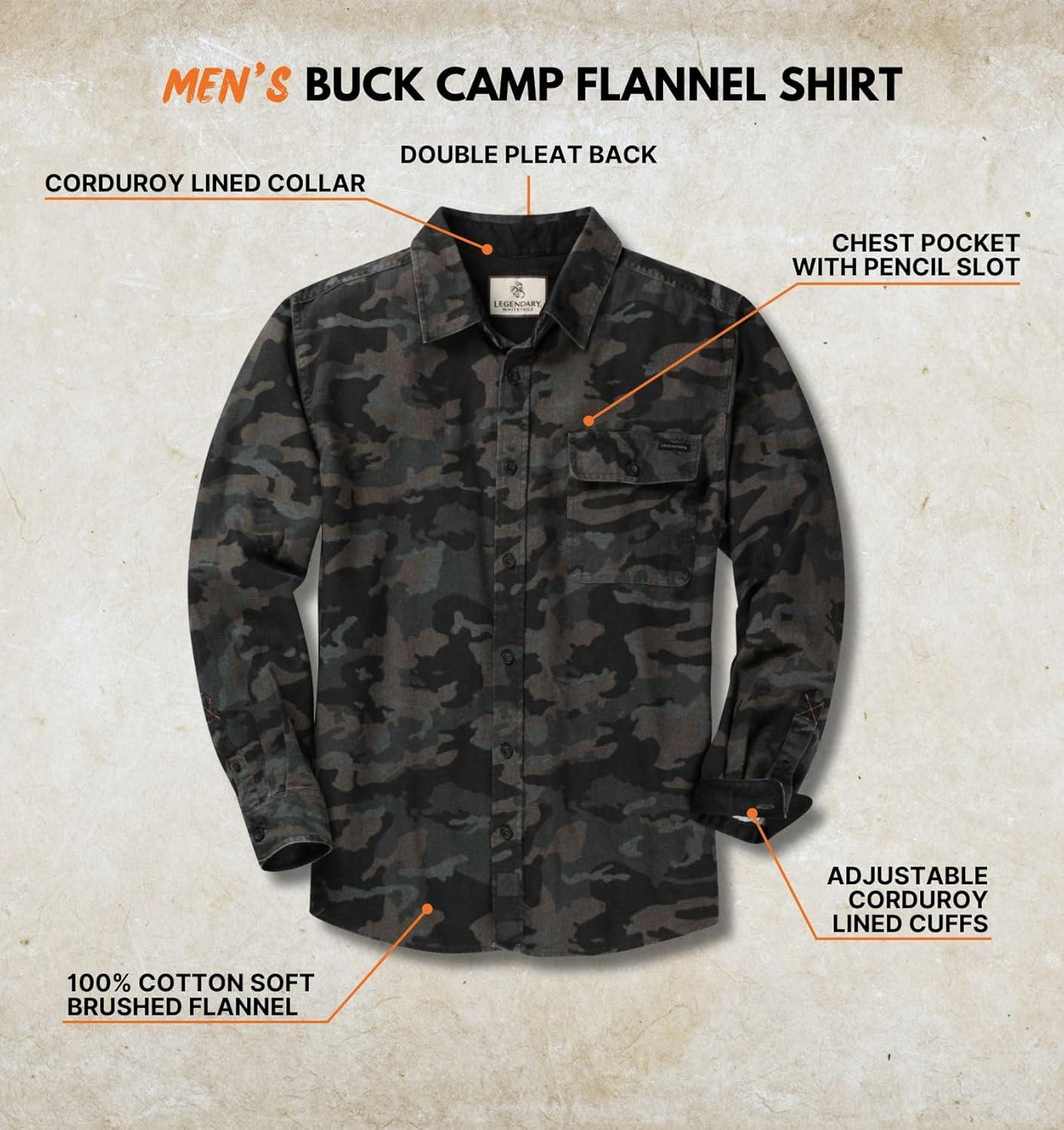 Legendary Whitetails Men’s Flannel Shirt Long Sleeve Button Down 100% Cotton(Nocturnal Camo)