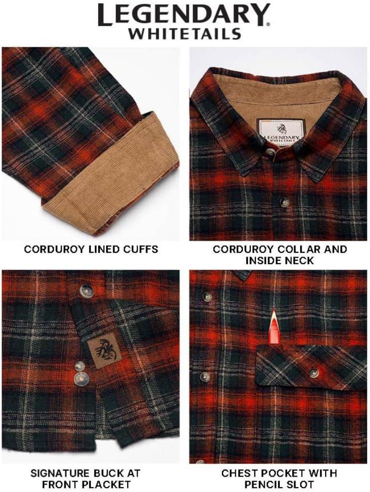 Legendary Whitetails Men’s Flannel Shirt Long Sleeve Button Down 100% Cotton(Redwood Plaid)