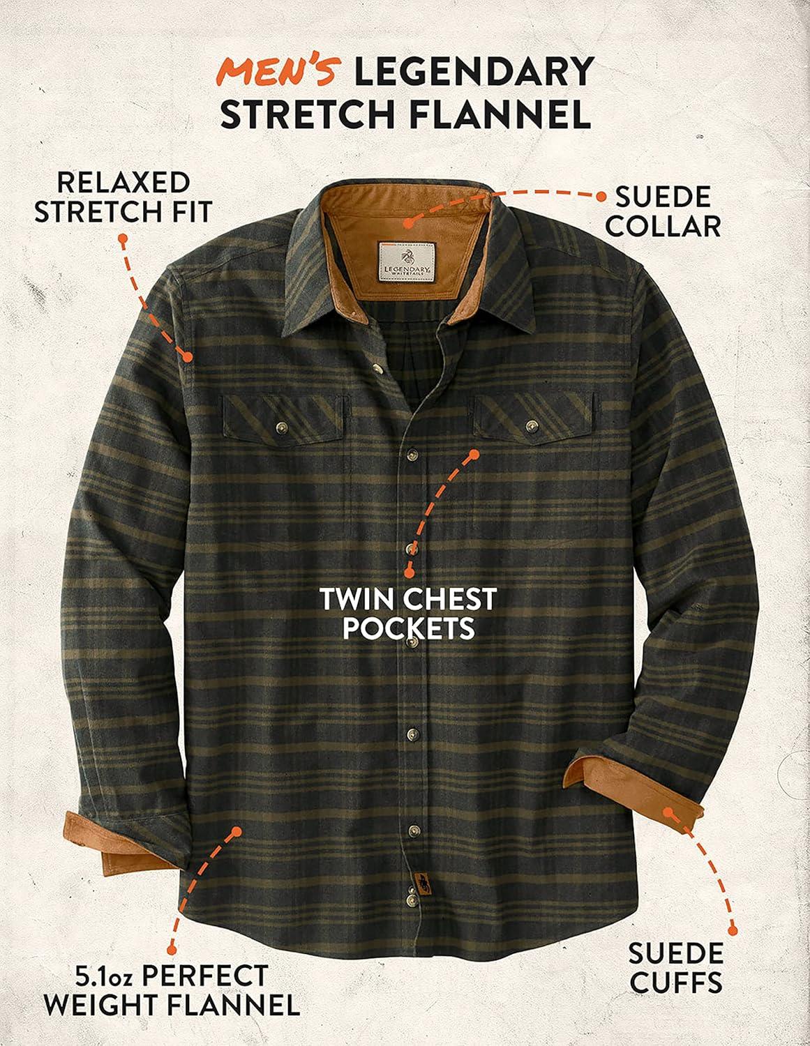 The Men's Legendary Flannel Shirt is the ultimate shirt for all your indoor and outdoor activities. We engineered it with the same relaxed fit as our other shirts, then raised the back yoke and added stretch to achieve a custom fit that gives you full range of motion without any tugging or pulling… even at full draw! Additional features include convertible pocket flaps that can be buttoned or tucked in, and super soft suede knit lined collar and cuffs. If you like our Buck Camp Flannel Shirt , you're going to love the new Legendary Flannel!