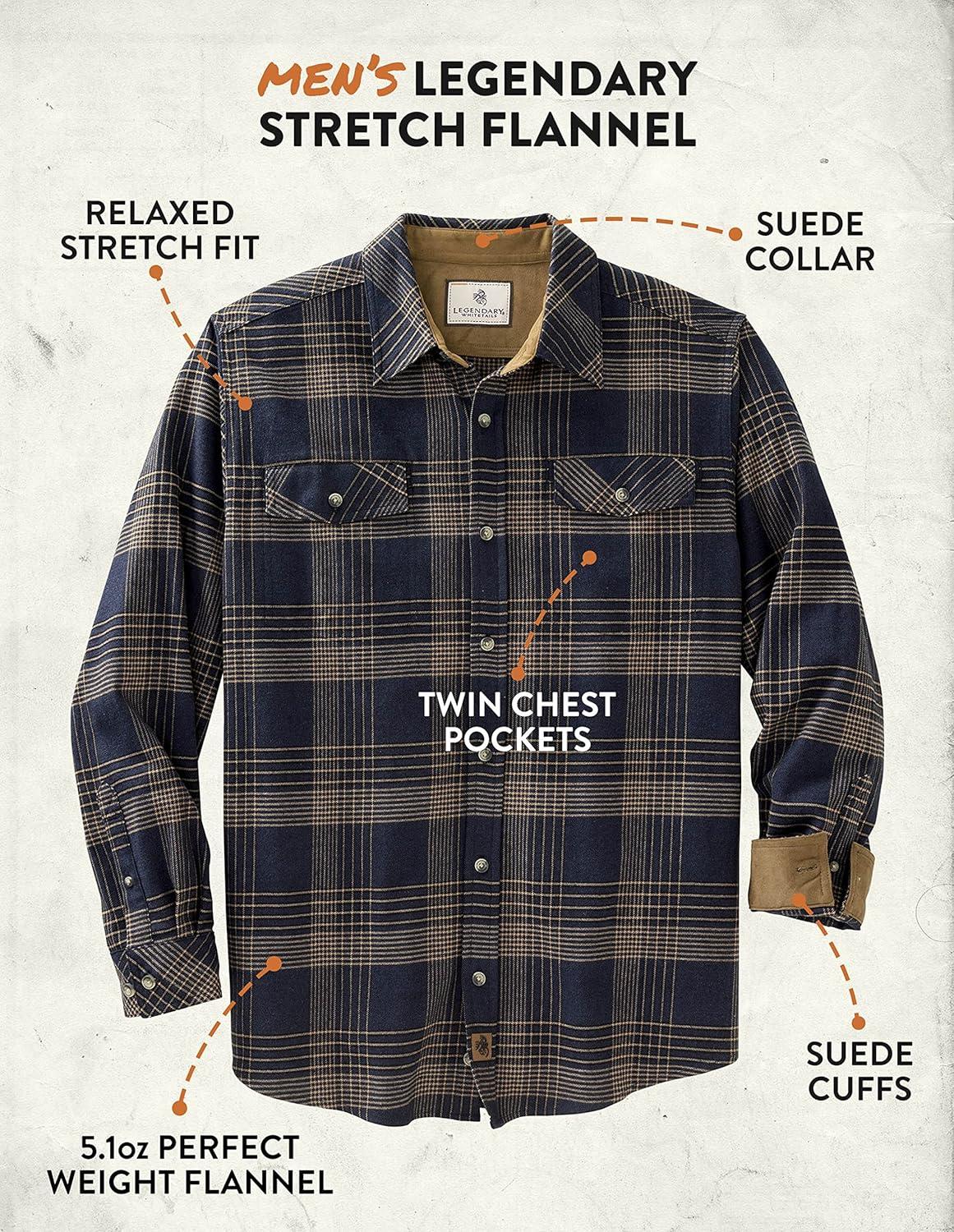Legendary Whitetails Men’s Flannel Shirt Long Sleeve Button Down 100% Cotton(Birch Poseidon Plaid)