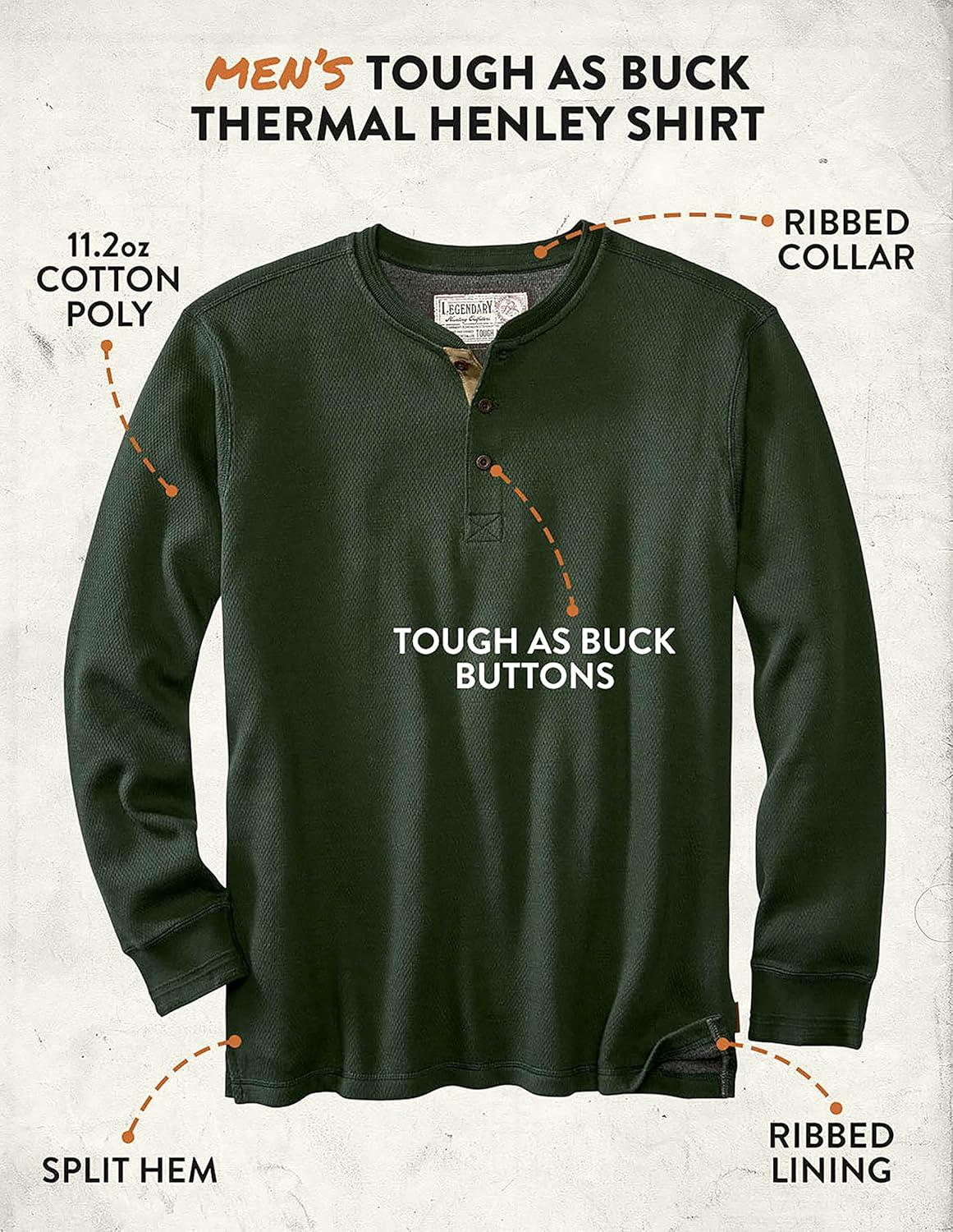 Legendary Whitetails Men’s Henley Shirt Long Sleeve Heavyweight Double Thermal Layer(Mountain View)