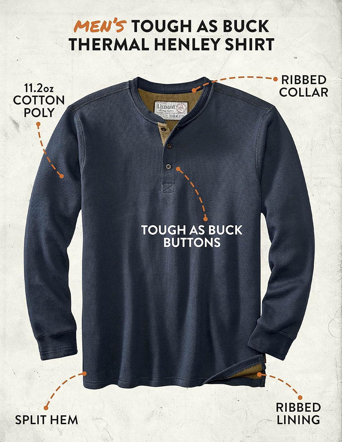 Legendary Whitetails Men’s Henley Shirt Long Sleeve Heavyweight Double Thermal Layer(Navy)