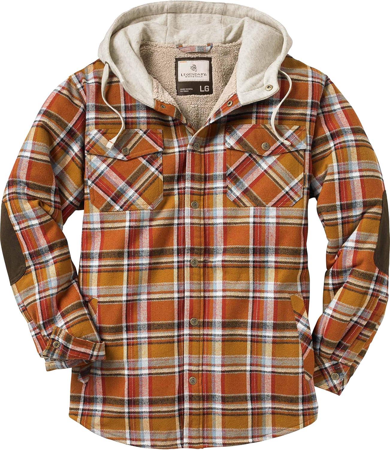 Legendary Whitetails Men’s Hooded Shirt Jacket Plaid Flannel Berber Lined Polyfill Insulated(Arrowood Barnwood Plaid)