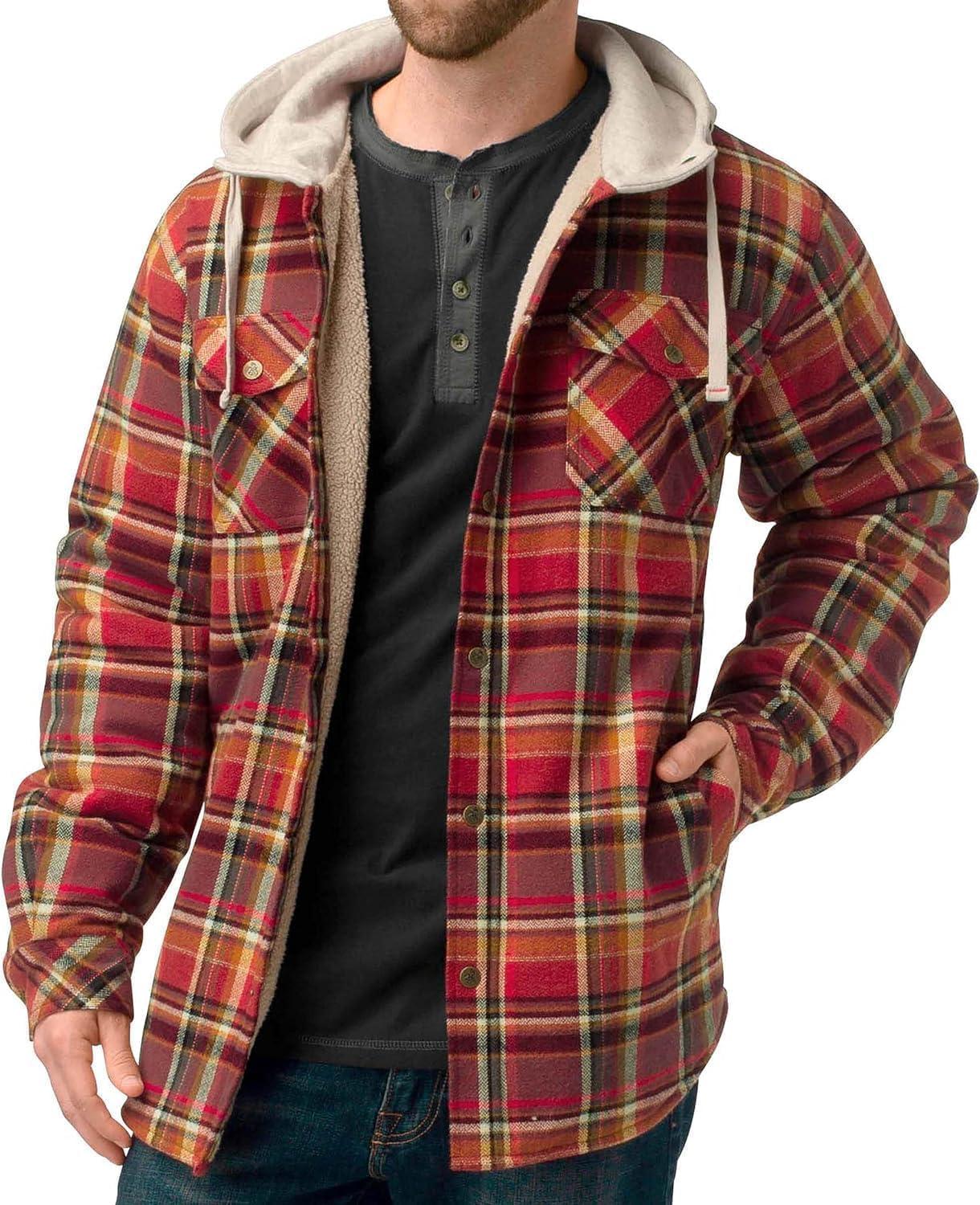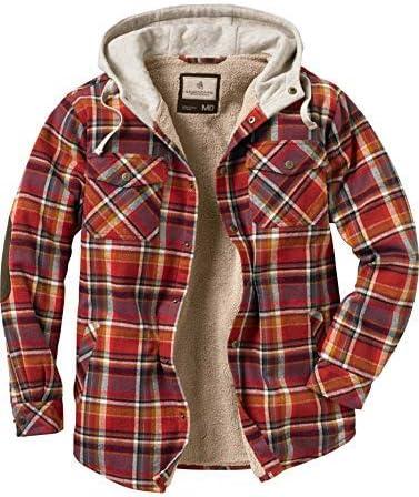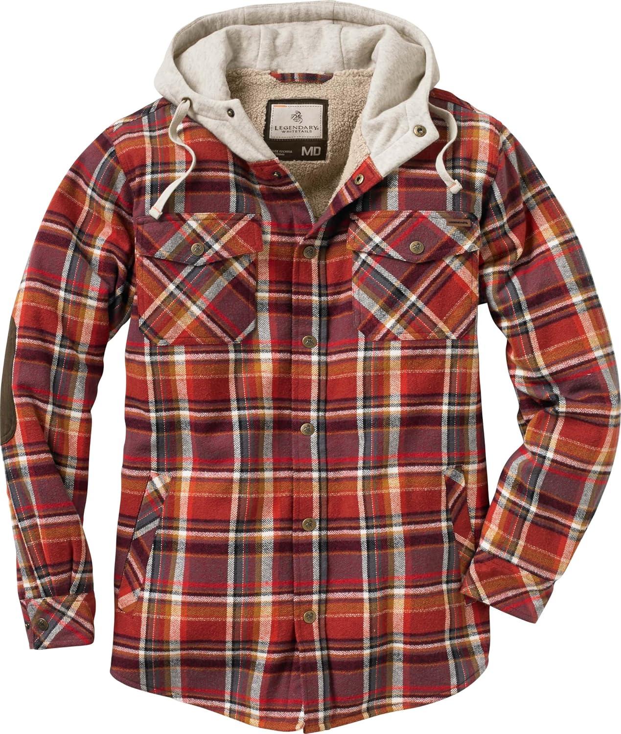 Legendary Whitetails Men’s Hooded Shirt Jacket Plaid Flannel Berber Lined Polyfill Insulated(Cardinal Arrowood Plaid)