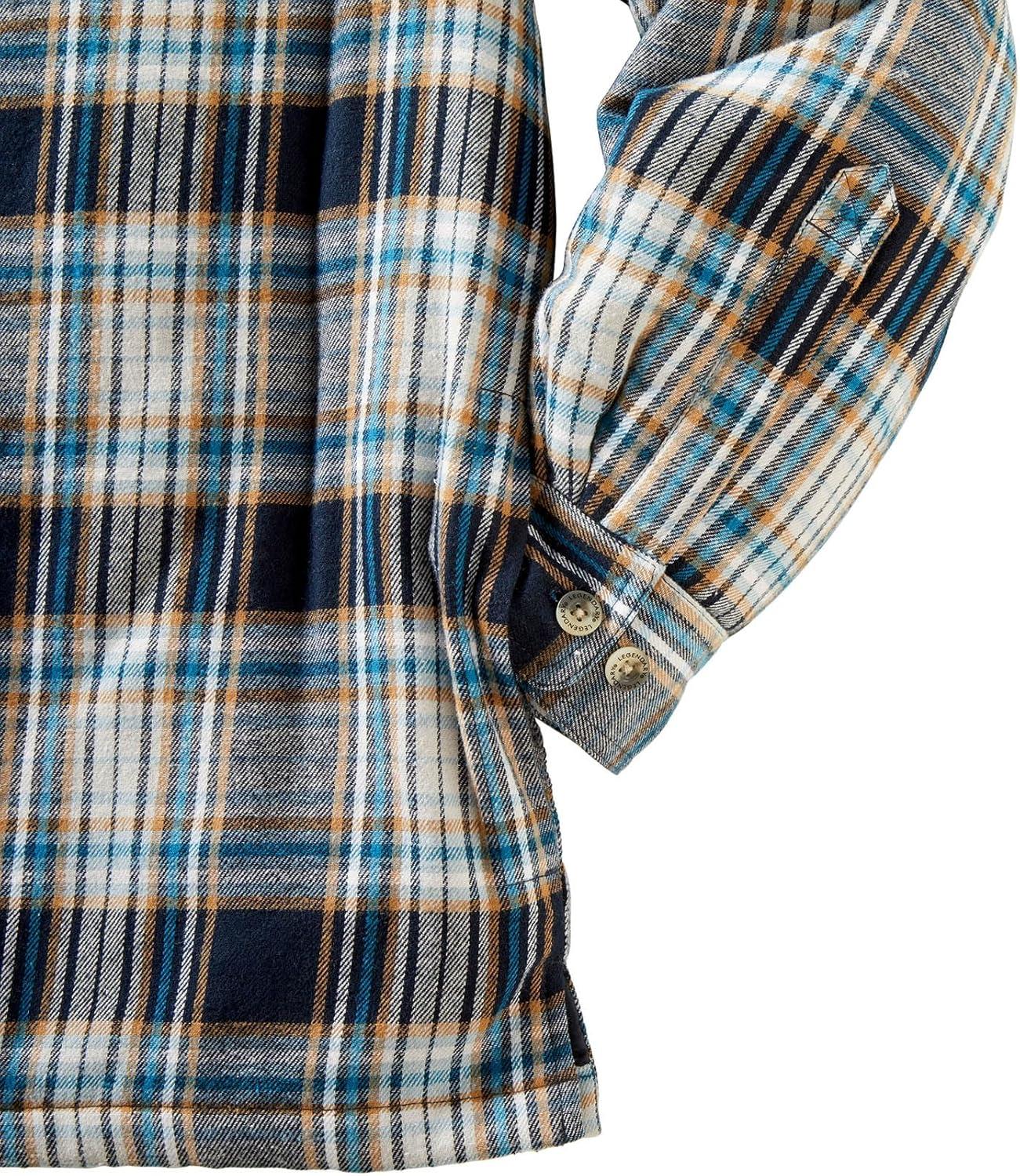 Can't wait for that first cool fall day? Then you'll love this soft washed 100% cotton yarn-dyed flannel hooded shirt jac. Featuring quilted satin lined body and sleeves with 130 gm of poly-fill insulation, zippered entry placket and double lined fleece hood – plus, convenient side hand warming pockets. Finished with Legendary buttons and Signature Buck embroidery.