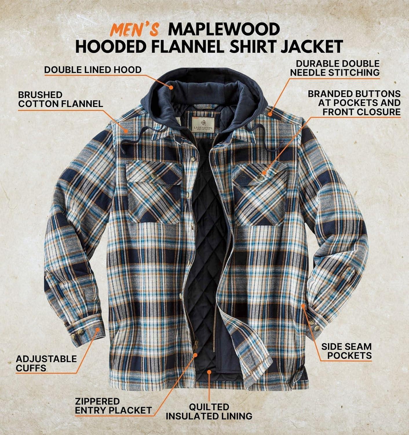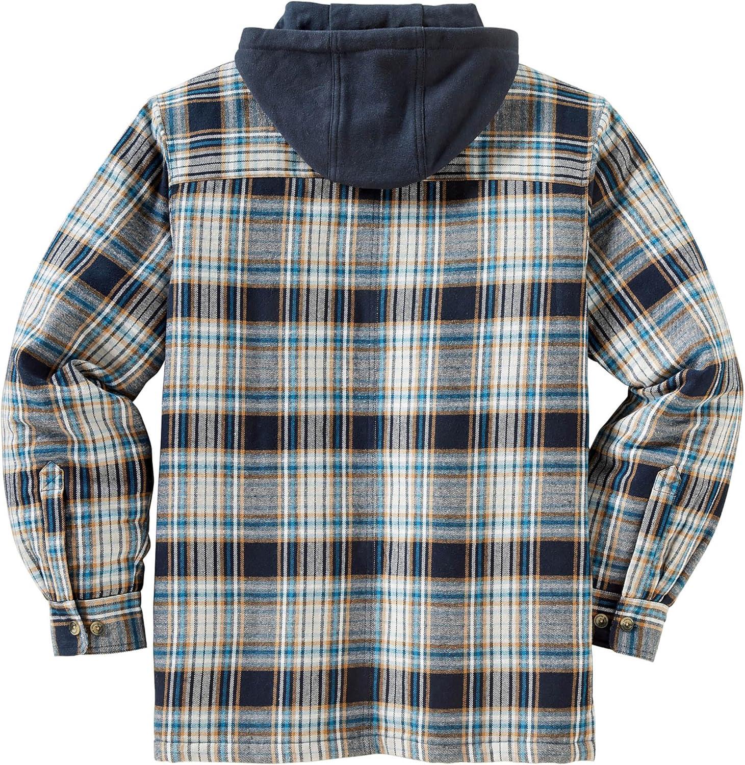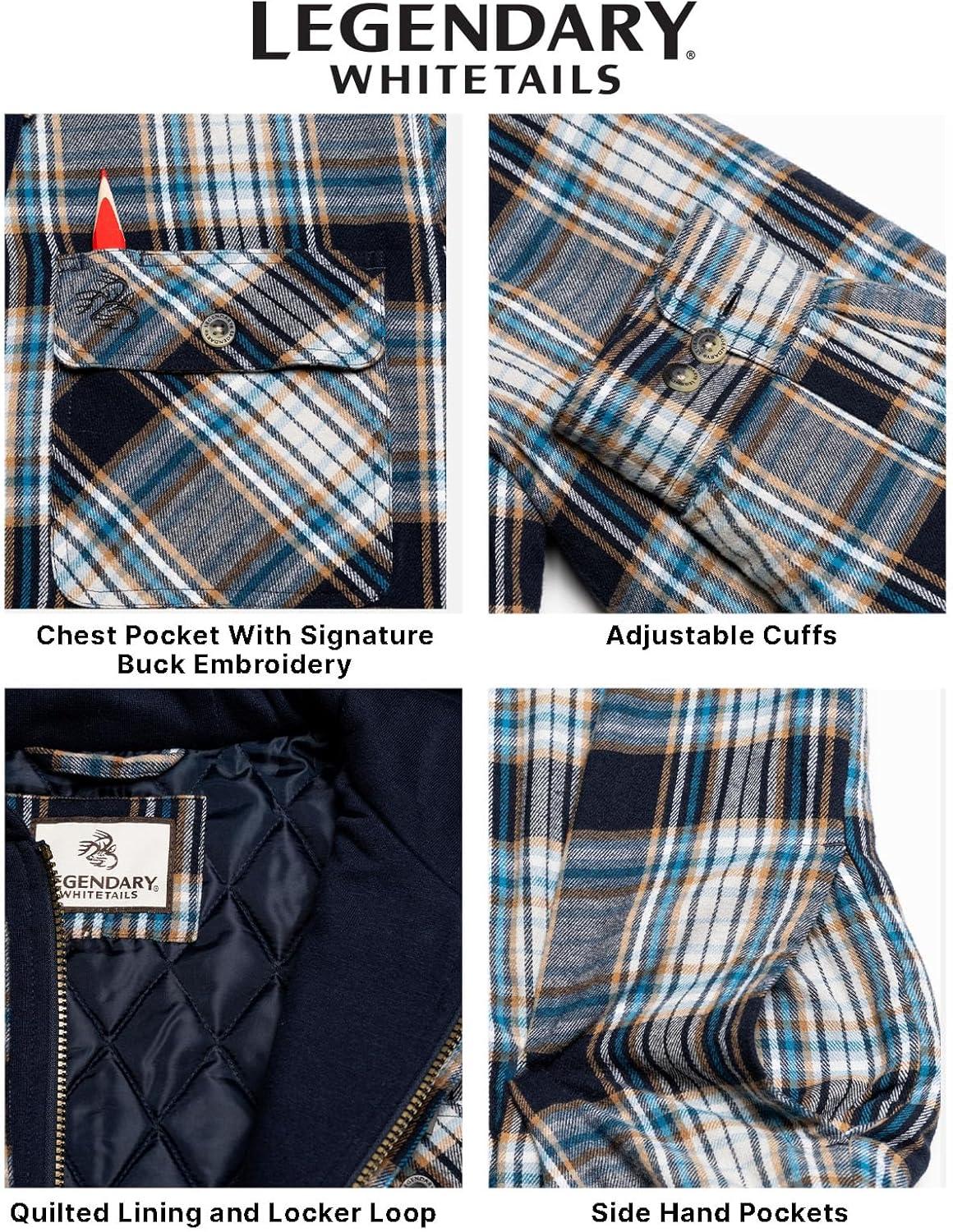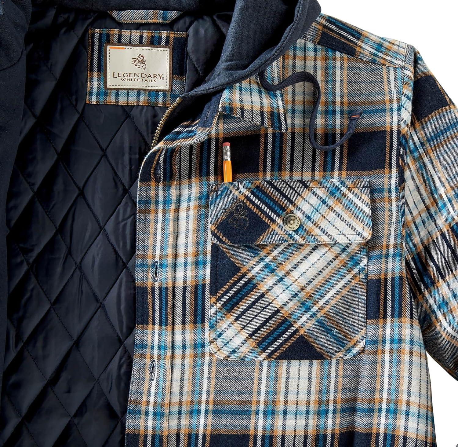 Legendary Whitetails Men’s Plaid Flannel Shirt Jacket Quilted with Hood Polyfill Insulated(Blue Dusk Plaid)