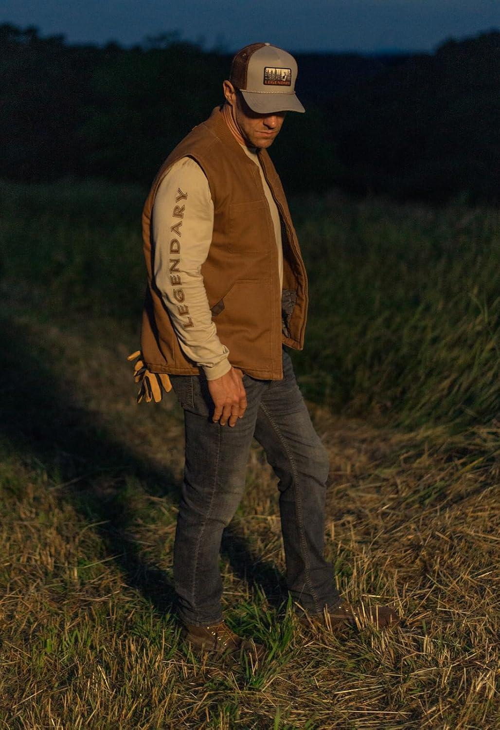 Legendary Whitetails Men’s Quilted Canvas Vest Zip Up Heavy Duty Water-Repellent Finish(Chestnut)