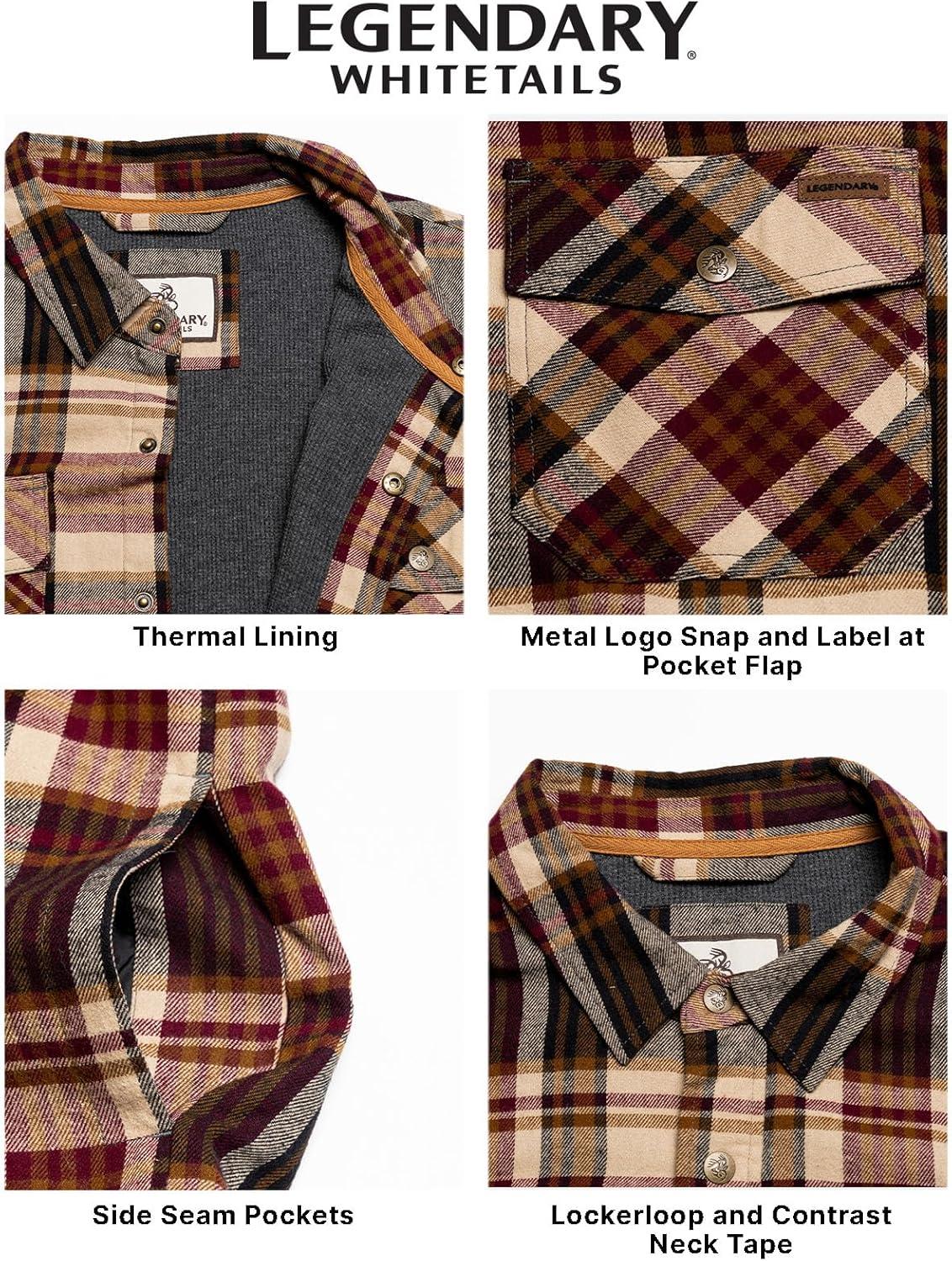 Legendary Whitetails Men’s Thermal Lined Shirt Jacket Plaid Flannel Polyfill Insulated(Cedarwood Plaid)