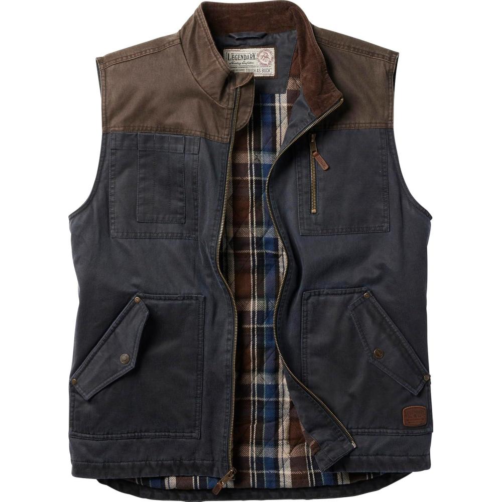Legendary Whitetails mens Tough as Buck Vest for Men, Work Flannel Lined Hunting Outerwear, Casual Western Insulated Zip Up(Navy)