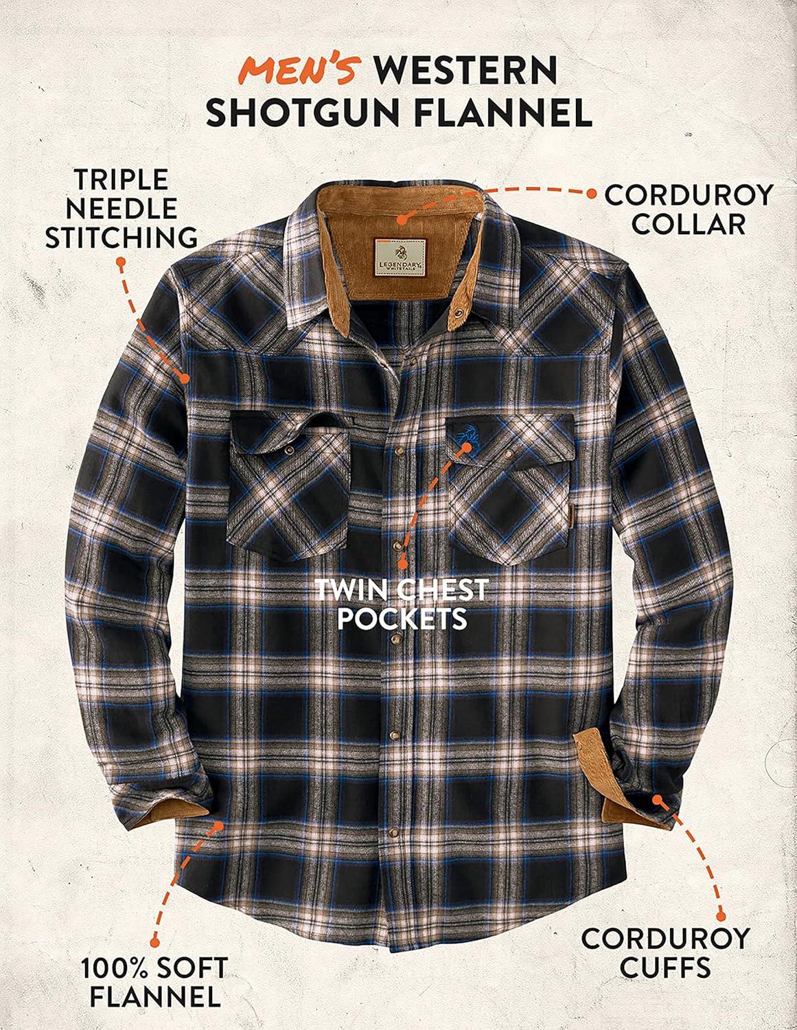 Legendary Whitetails Men’s Western Flannel Shirt Button Up Brushed Cotton(Outlaw Plaid)
