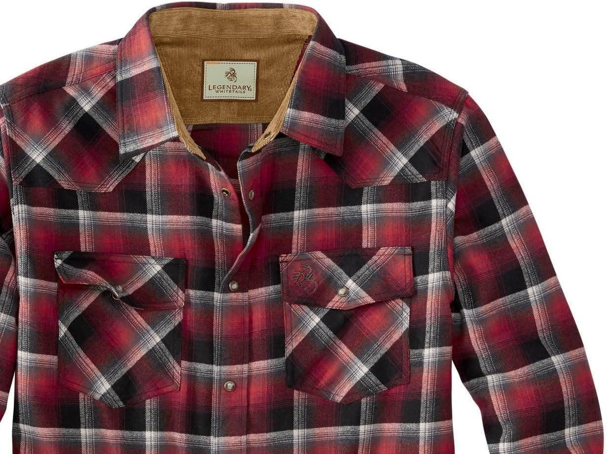 This Legendary plaid shirt features an exclusive Western flair design and was built for the hardworking man. A front-and-back yoke gets things started, embossed Legendary pearl snaps at the placket, cuffs, and twin snap closure chest pockets. Reinforced corduroy collar and cuffs finish it off in manly style. Completed with Legendary Signature Buck embroidery and triple-needle stitching. Warm, comfortable, brushed cotton flannel.