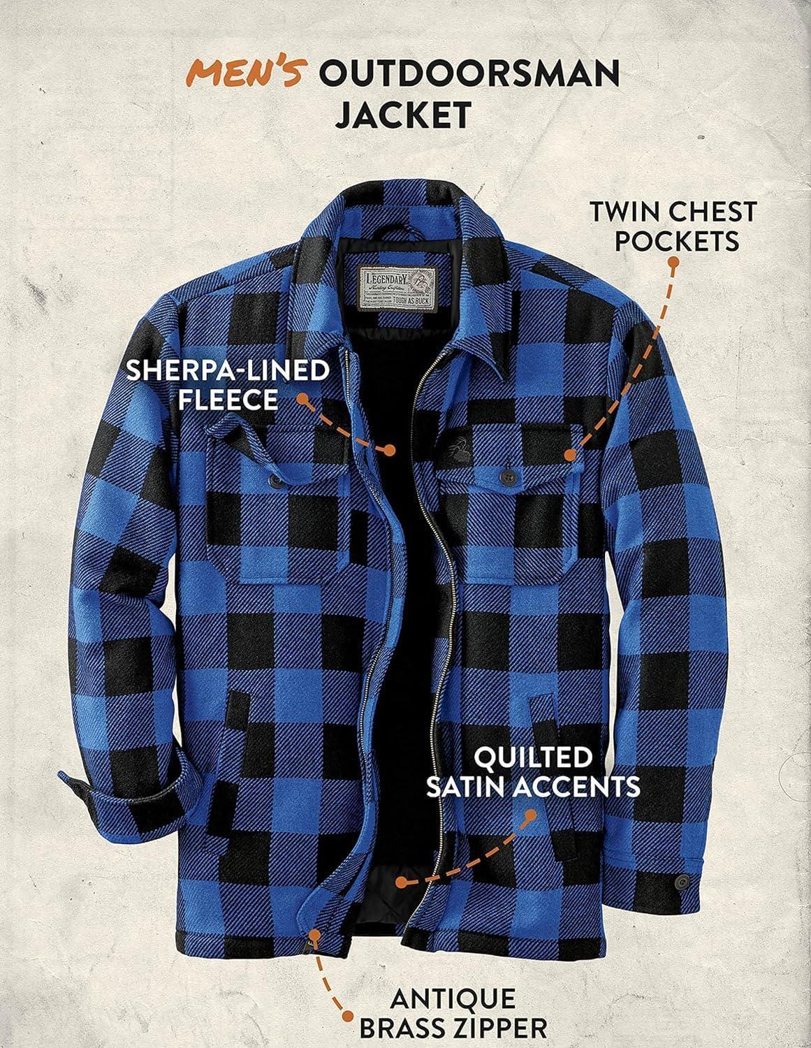 Legendary Whitetails Men’s Wool Blend Jacket Quilted Satin Insulated Sleeves Sherpa Lined(Bluecat Plaid)
