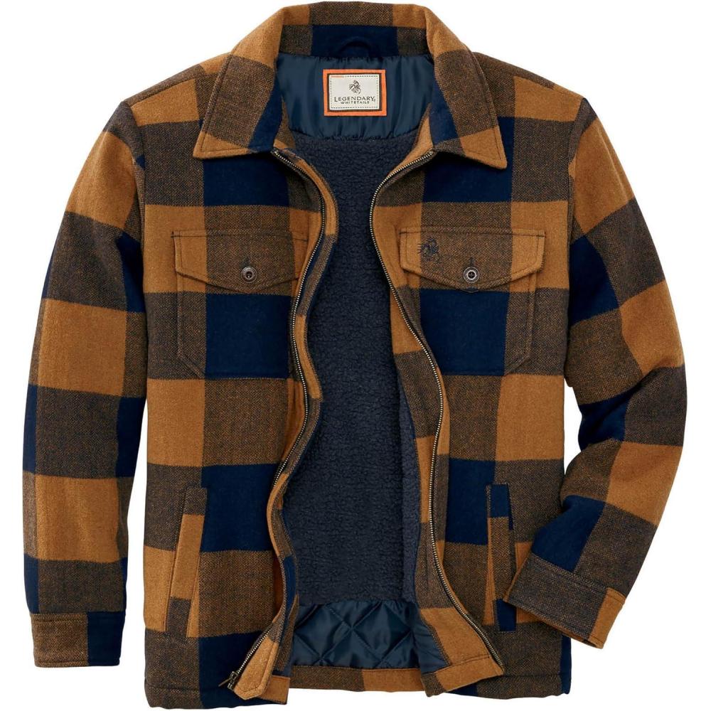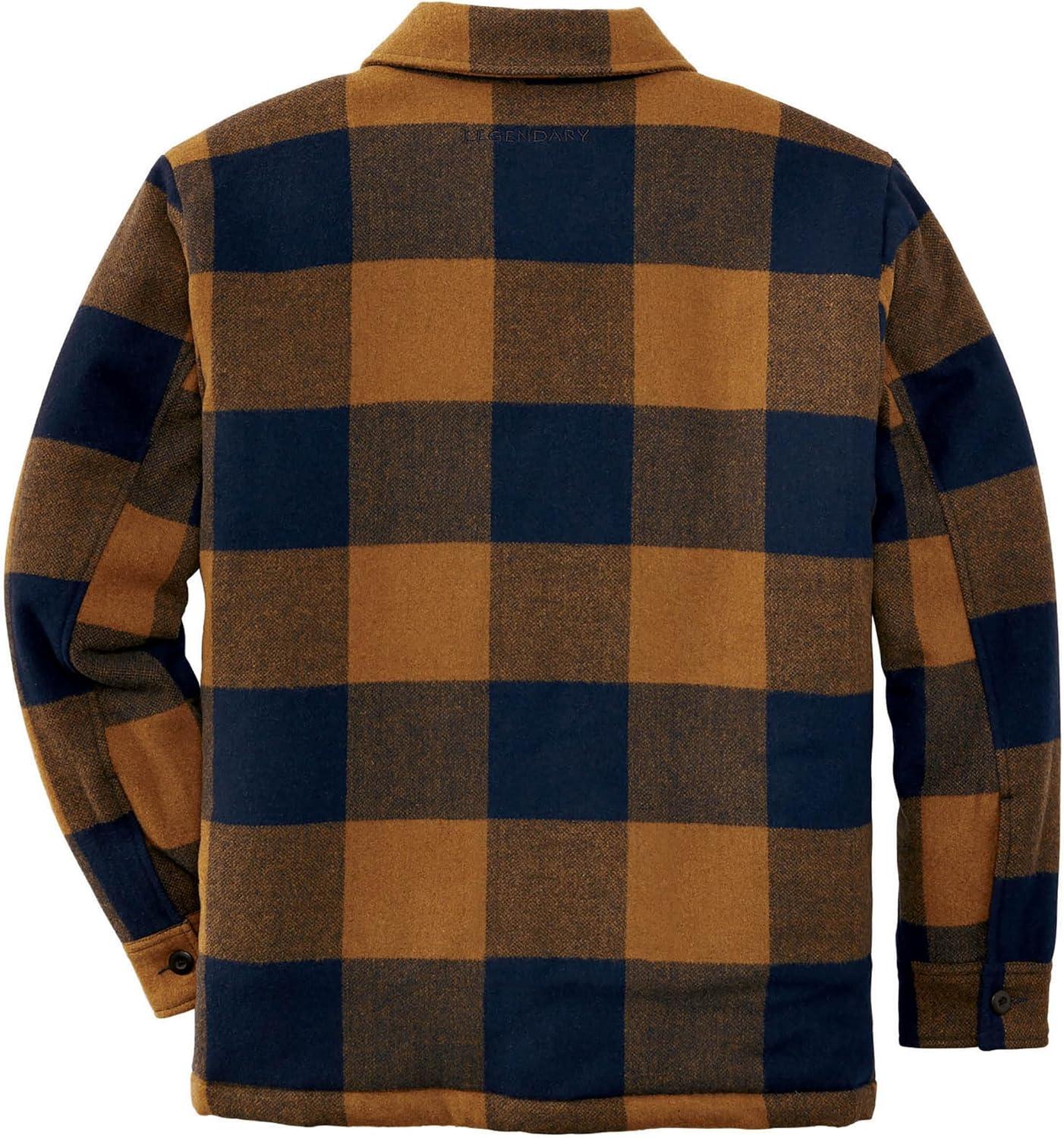 Legendary Whitetails Men’s Wool Blend Jacket Quilted Satin Insulated Sleeves Sherpa Lined(Golden Night Plaid)