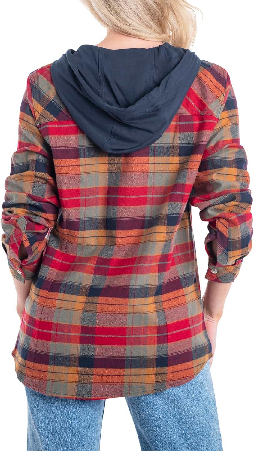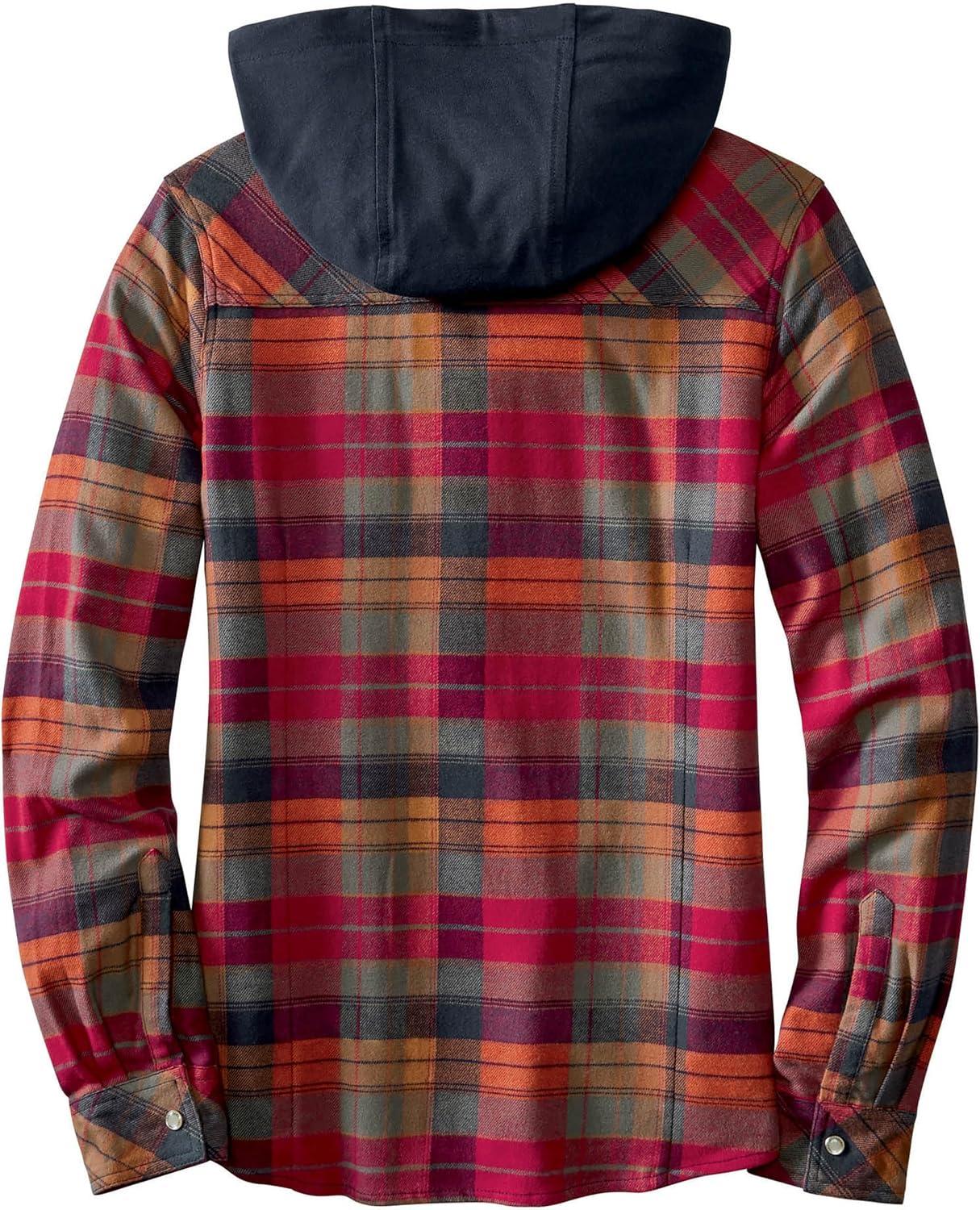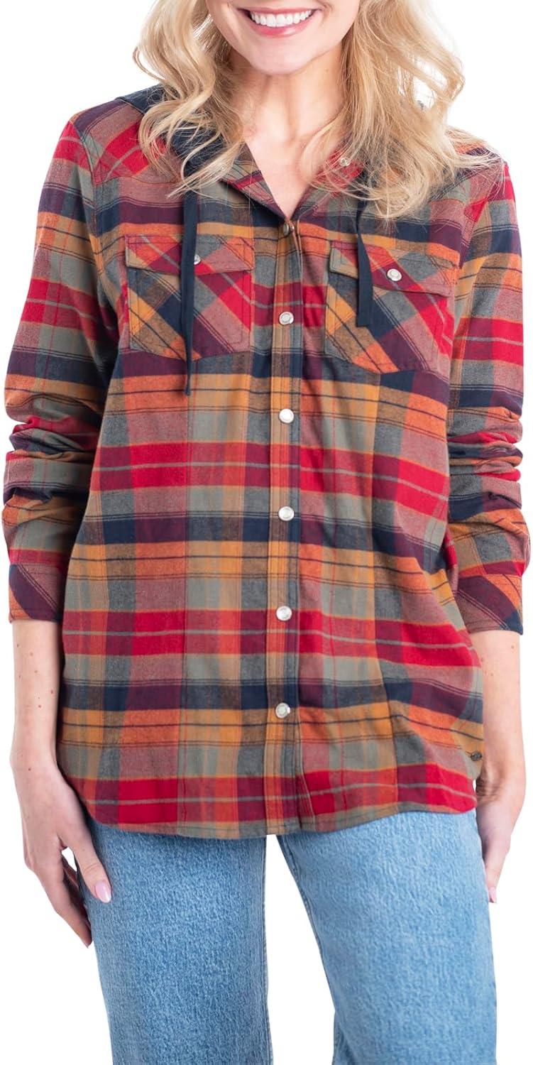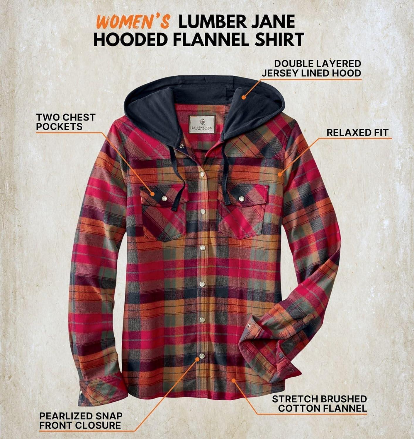Legendary Whitetails Women’s Flannel Shirt Hooded Heavyweight Stretch Button Up(Falling Leaves Plaid)
