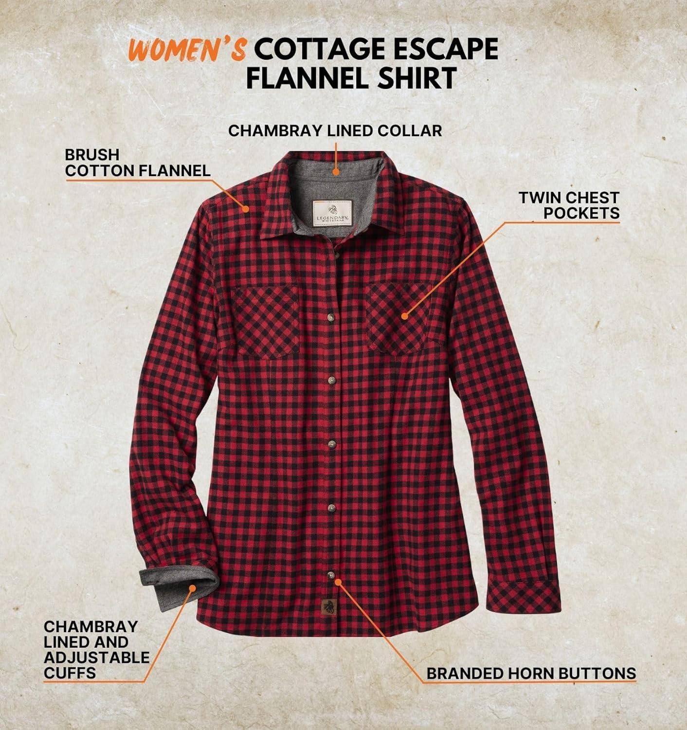 Legendary Whitetails Women’s Long Sleeve Plaid Flannel Button Up Shirt 100% Cotton(Mini Buffalo Check)
