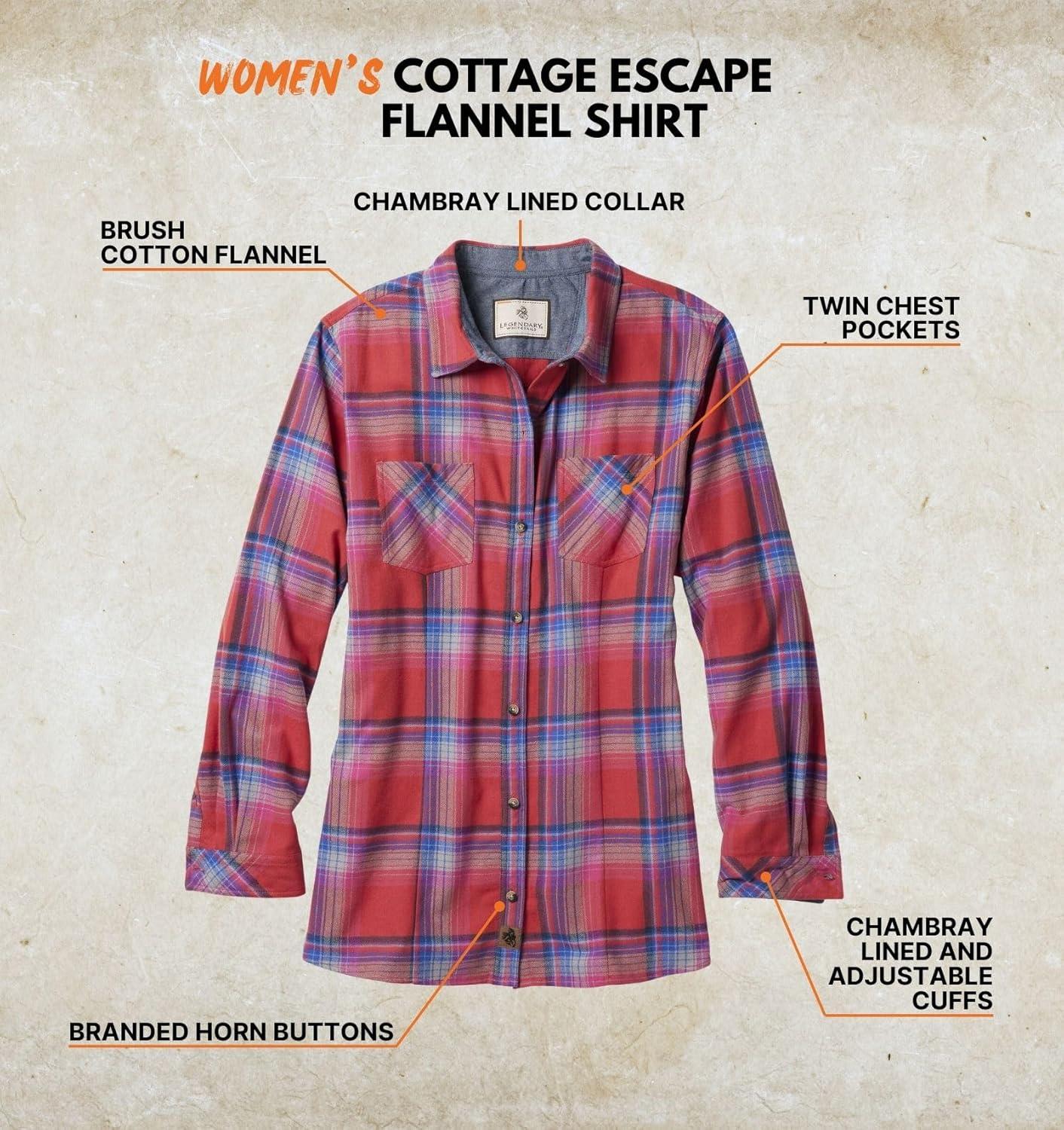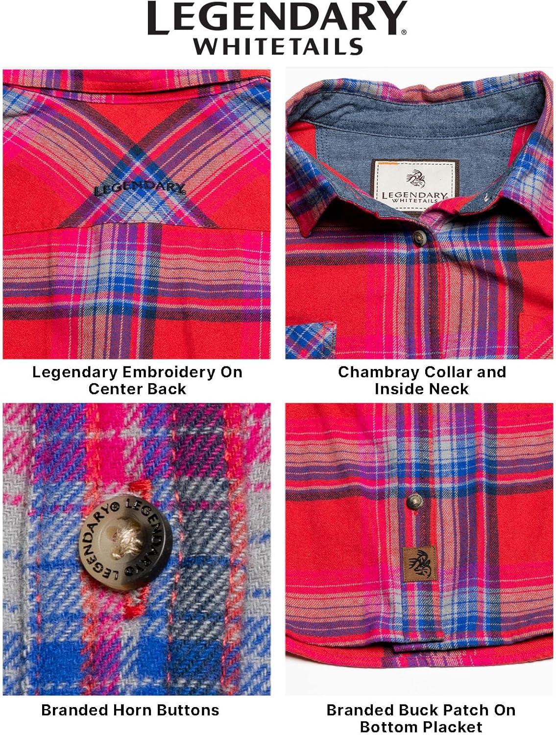 Legendary Whitetails Women’s Long Sleeve Plaid Flannel Button Up Shirt 100% Cotton(Red Hot Plaid)