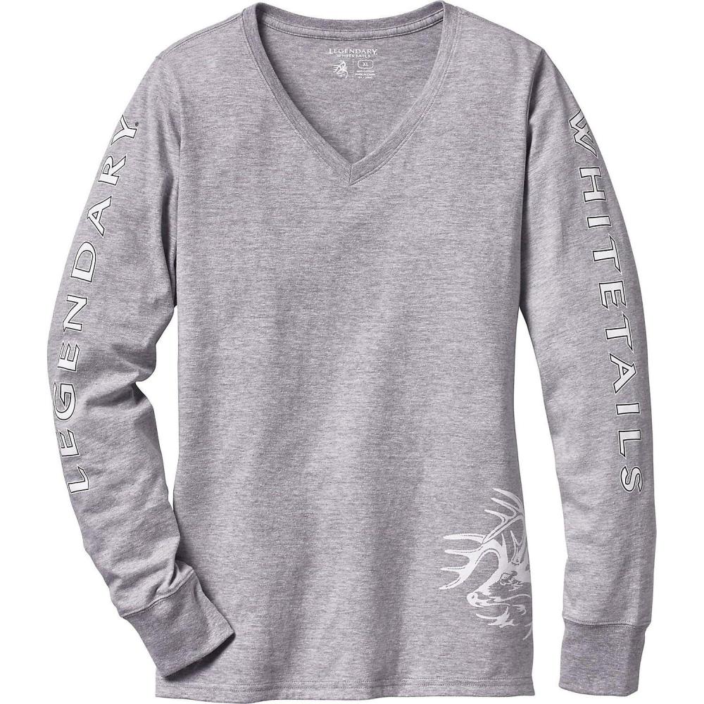 Nothing is more Legendary brand than a stylish long sleeve tee in the season's hottest colors. Made from 100% cotton, our Women’s Long Sleeve V-neck tee will keep you comfortable while you hang out with friends or run errands. Printed graphics include LEGENDARY up one sleeve and WHITETAILS down the other with our exclusive Signature Buck Logo on the hip. This stylish casual top is tagless for added comfort with ribbed cuffs. Available in a variety of colors and sizes, including plus sizing, you might find it hard to pick just one.